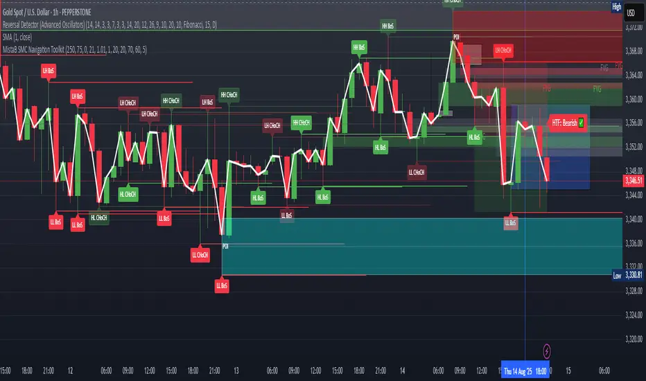 A complete Smart Money Concepts (SMC) toolkit designed for precision navigation of market structure, order flow, and premium/discount trading zones. Perfect for traders following ICT-style concepts and multi-timeframe confluence.