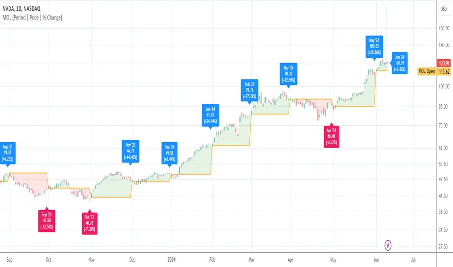 Labels provide additional information about closing price and % change for a particular month and allow micro customizations.