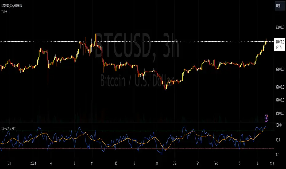 This script is a custom indicator for use on the TradingView platform, which combines the Relative Strength Index (RSI) with a moving average applied to the RSI itself to smooth its movements and potentially identify trends or reversals more clearly.
