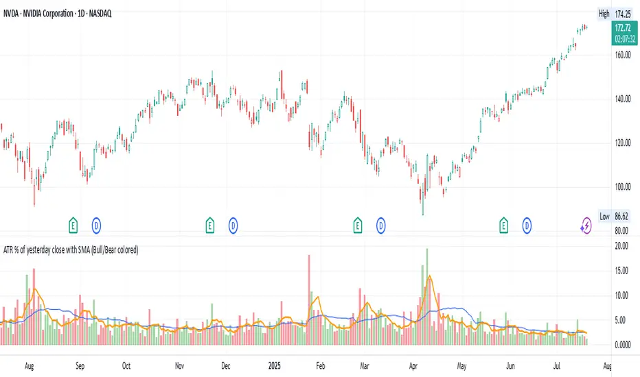 已更新 ATR % of yesterday close with SMA (Bull/Bear colored)