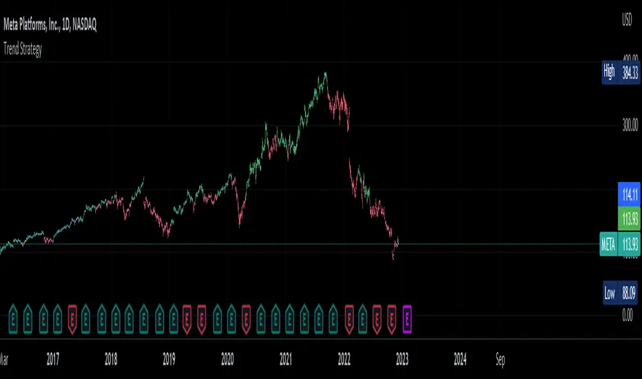 This Strategy is a trend following indicator. It is plotted on price and the current trend can be determined by its placement vis-a-vis price. It is constructed with just three parameters: Period, Multiplier and Entry/Exit Point with Superformula.