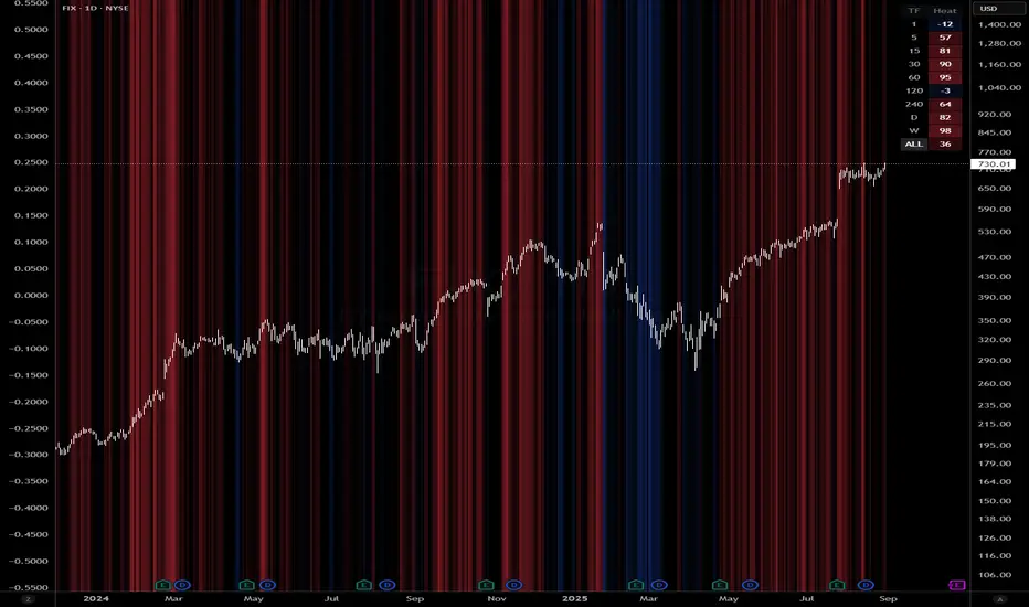 - Reset on regime flip (optional) — First valid push from the opposite side can snap Heat back to 0 before applying new gains.