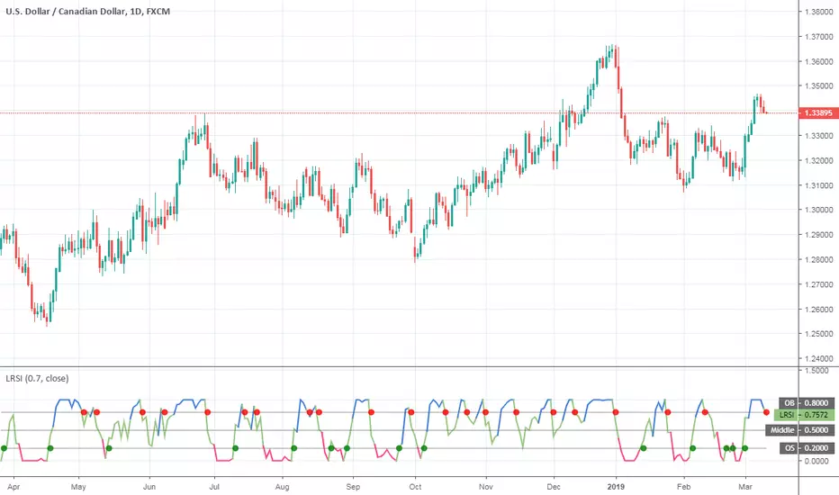Laguerre RSI indicator script. This indicator was originally developed by John Ehlers.