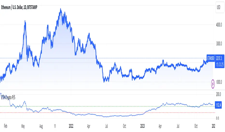 A low P/S ratio means that the crypto price is undervalued relative to the fees that are generated, while a high P/S ratio signifies that the price is overvalued.