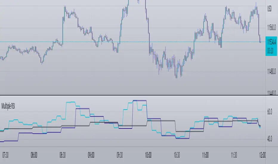 5 rsi plots combined into one single indicator. I just took the source code for a generic RSI indicator and combined them into one indicator so that you wouldn't have to. I'm honestly not even sure this is necessary because they probably already exist out there but I was working on something else and figured I'd publish this part of it as a stand alone script in case somebody needs this.