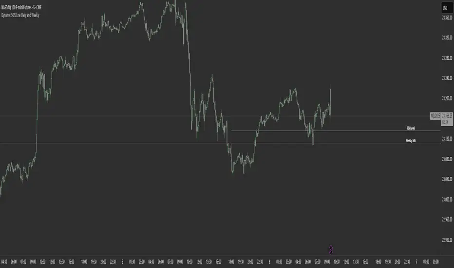 - Weekly 50% Line: Resets on Sunday at 6 PM NY time (new trading week).
