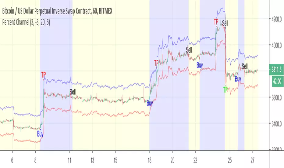 This channel based on price % above and bellow the close price . I set to be 3 % above or bellow. This give us two functions: