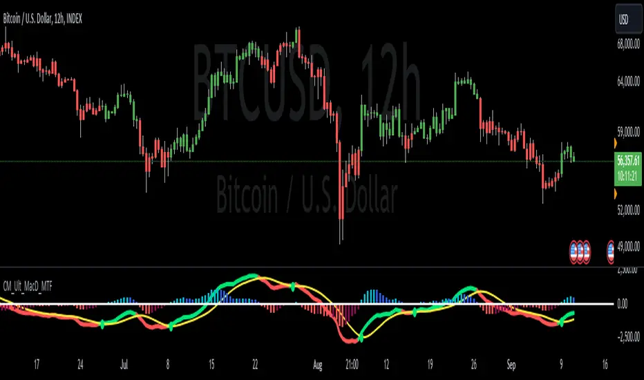 This indicator is a versatile tool for traders who want to visualize MACD-based momentum and crossover signals in multiple timeframes with clear visual cues on price bars.