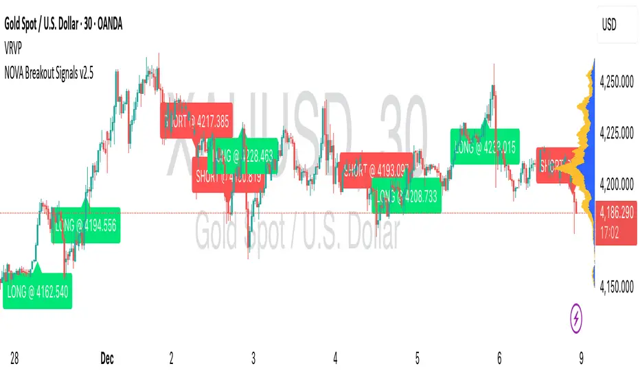 I’m excited to share that version 2.5 includes meaningful upgrades and has backtested well on XAU/USD. The indicator plots LONG/SHORT labels only (no orders, SL/TP) and can shade the background by trend. Signals are de-duplicated with a cooldown and are raised on confirmed bars.