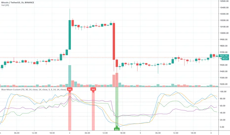 This Script is based on the RSI, MFI, and Stochastic RSI signals., which can be selected individually. Setting the Bound level will adjust your signal Utilizing the over bought and over sold conditions on the RSI, MFI, and Stoch RSI collectively. It which can be adjusted to work for any market.