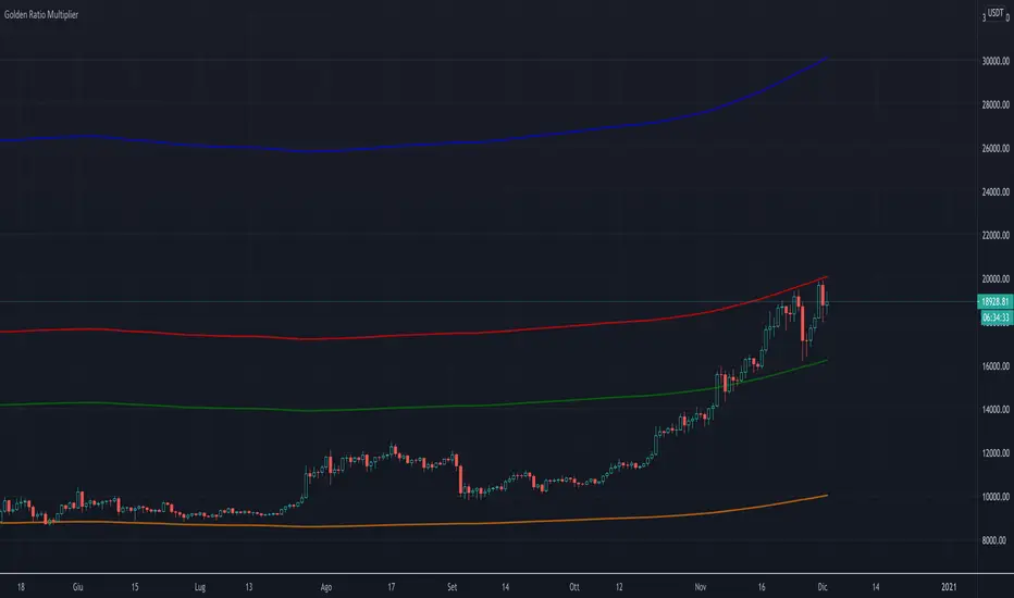 The script displays three multipliers (x1.618; x2; x3) of the Golden Ratio (starting with MA at 350 days) to identify the following levels of support: