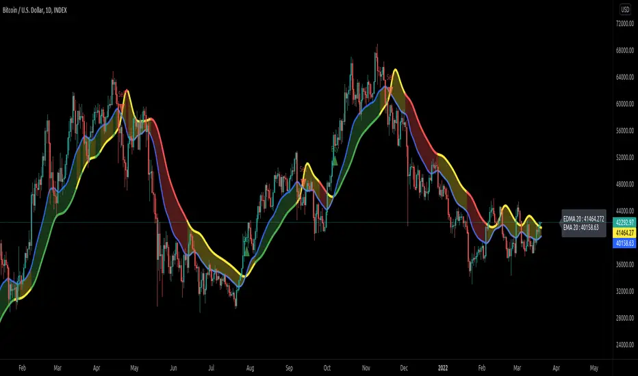 - EMA Band: EMA band is shown on chart to better visualize EMA cross with EDMA.