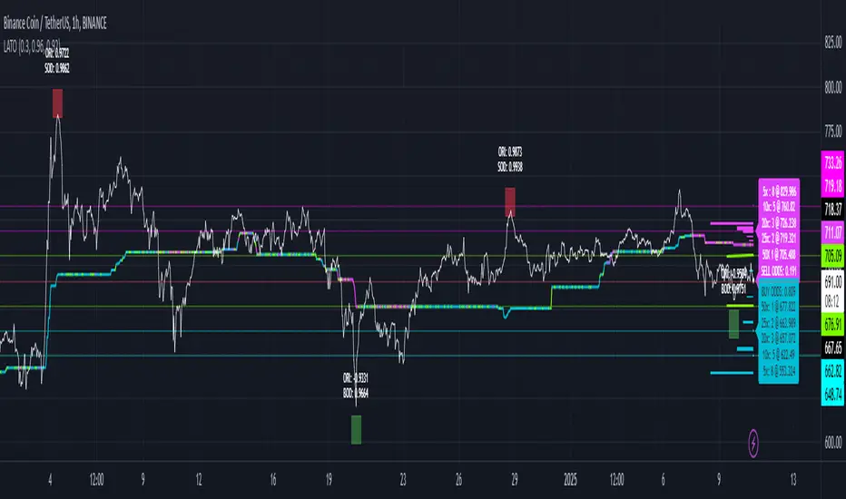 The Leverage-Aware Trade Optimizer (LATO) is a comprehensive trading tool designed for traders seeking to optimize their trade entries and exits. By combining multiple indicators, dynamic price levels, and reversal zone detection, LATO offers an advanced approach to market analysis and decision-making. Whether you’re trading with leverage or simply looking for trend confirmation, LATO provides the insights you need to maximize your trading potential.