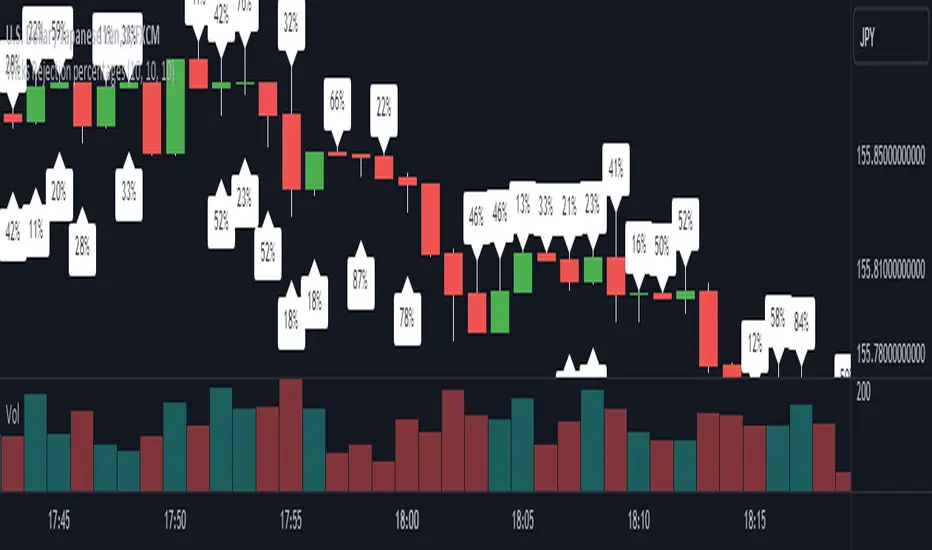 Analyzing wick rejection percentages can provide insights into market sentiment and potential future price movements. For example, high wick rejection percentages at key support or resistance levels may indicate strong buying or selling interest and could influence trading decisions.