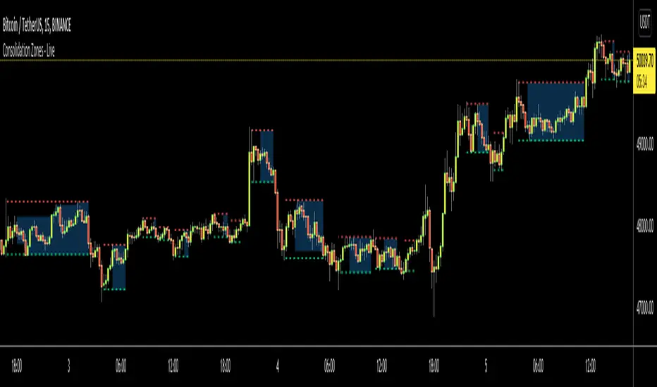 - By using the direction and highest/lowest bar info it calculates consolidation zones in realtime