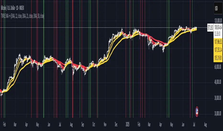 Trend Confirmation: All MAs aligned in the same direction (e.g., MA1 > MA2 > MA3 = Strong Uptrend)