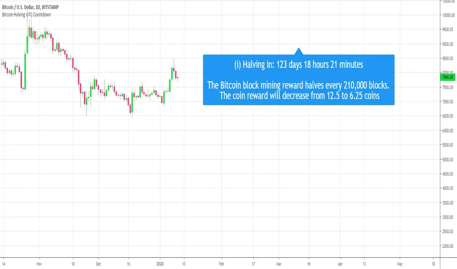 I offer you today the BTC halving countdown updated in real-time on your charts