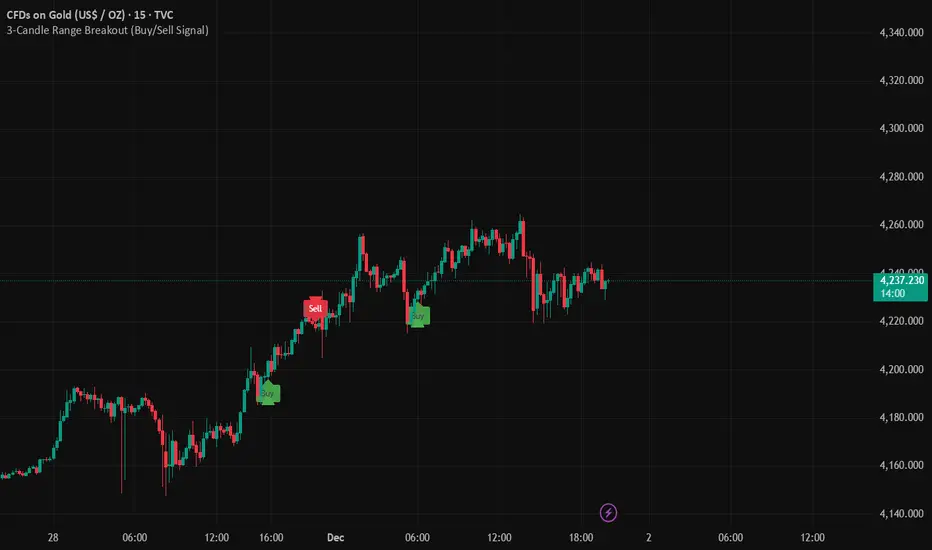 “This indicator visually marks a 3-candle range breakout pattern for analysis purposes only. It does not provide buy or sell signals.”