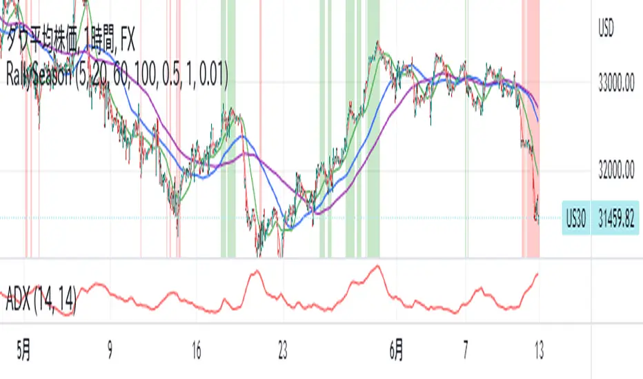 "RallySeason" indicator display the time of the rally from the relations of three moving average lines.