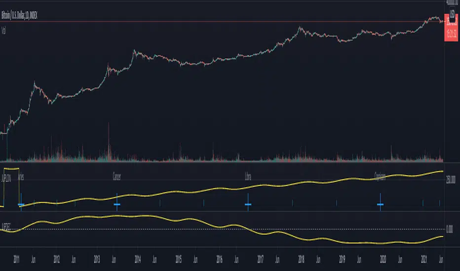 Note: The Jupiter declination indicator is based on an ephemeris array that covers years 2010 to 2030, prior or after this years the declination is not available, this daily ephemeris are based on UTC time so in order to align properly with the price bars times you should set UTC as your chart reference timezone.