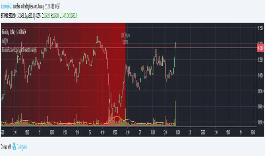 This customizable overlay warns the user in a visual and textual way of upcoming (and past) bitcoin futures expiry & settlement dates on CME and CBOE exchanges.發行說明