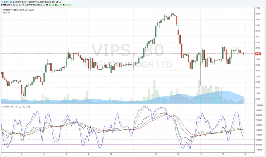 Indicator consisting of RSI, an EMA of RSI, an EMA of RSI's EMA, and Stochastic.