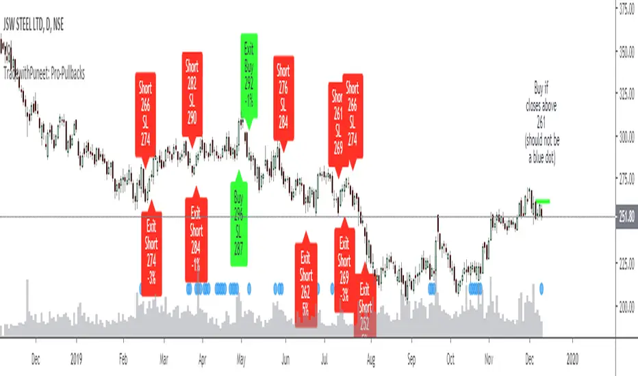 The strategy uses certain filters to identify whether the stock is in Uptrend or Downtrend. Next, it identifies pullbacks to an identified trend. Pullbacks are sometimes too short or too deep. This strategy ignores such short & deep pullbacks. Finally, it identifies certain threshold levels (for confirmation), beyond which the stock is expected to resume the original trend. If the stock closes beyond the threshold level, it gives the necessary BUY or SHORT signal.