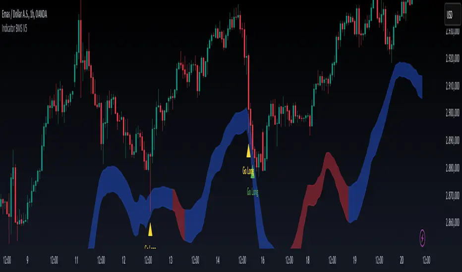 Base Market Strategy (BMS) is a high win-rate scalping indicator, combining trend-following EMA filtering with momentum reversal detection from Bollinger Bands. With a dynamic and adaptive approach, this indicator provides precise entry signals while reducing noise from insignificant price movements.