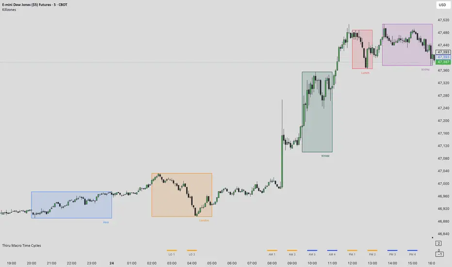 • 5 customizable trading sessions (Asia, London, NYAM, Lunch, NYPM)