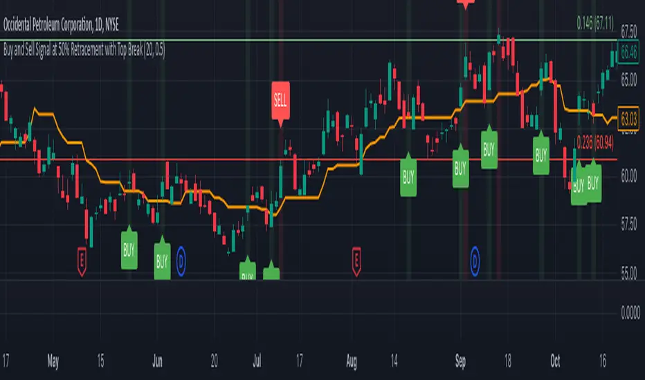 When the price retraces 50% of the defined range (from the low to high), a Buy signal is triggered.