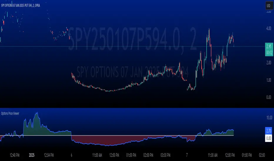 indicator("Rich's DikFat Money-Counter - In the Money/Out of the Money Options Price Viewer", shorttitle="Options Price Viewer", overlay=true)