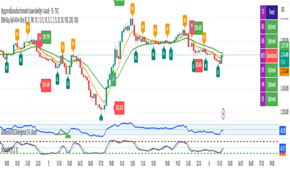 • Multi-Timeframe Trend Table: Visual overview of EMA trends across D1 → M1 timeframes