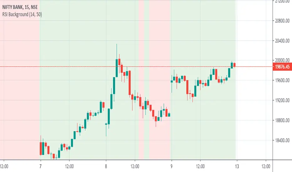 The script changes the background depending on the RSI 14 values. If RSI 14 values is above 50 the background is green and if RSI value is below 50, the background will be red.