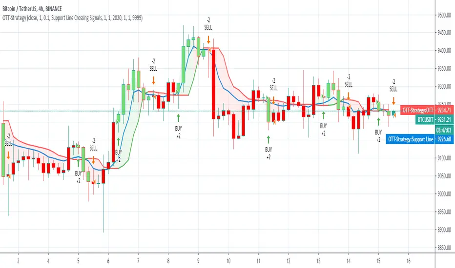 - You can run two different strategies. In the Settings section, you can test two different strategies, "Support Line Crossing Signals" and "Price / OTT Crossing Signals".