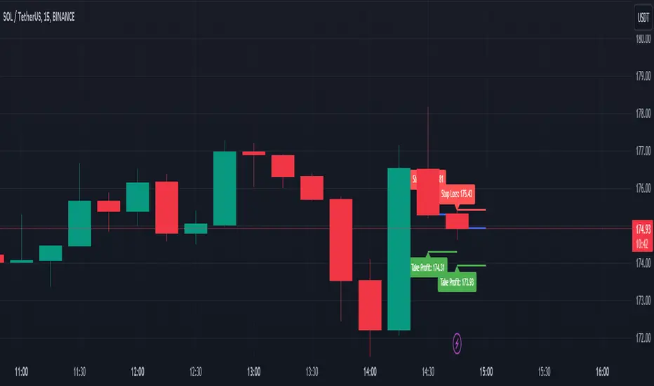 5. **Alerts:** The indicator generates alerts when the price hits the stop loss or take profit levels, ensuring that traders are promptly notified of important trade events.