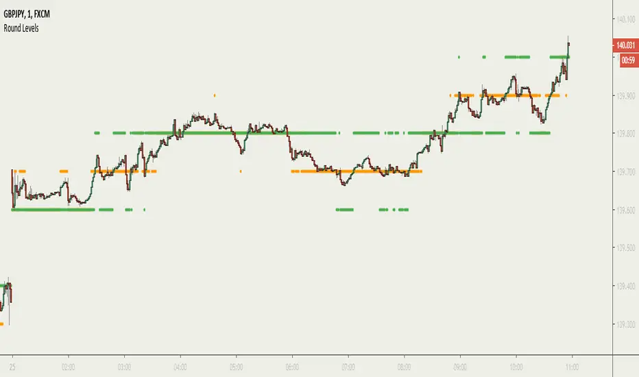 This indicator is based on the "NL Round Levels" indicator. Thank you to the developer.