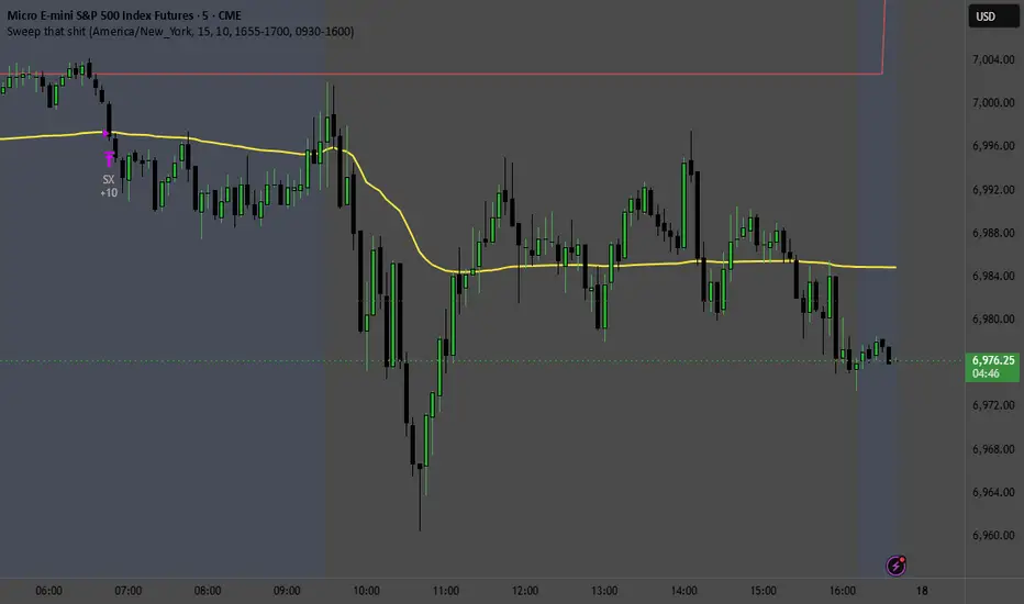 This strategy takes trades after sweeping the previous day's highs or lows and takes profit at VWAP. SUPER profitable. Have fun and stay safe kids.