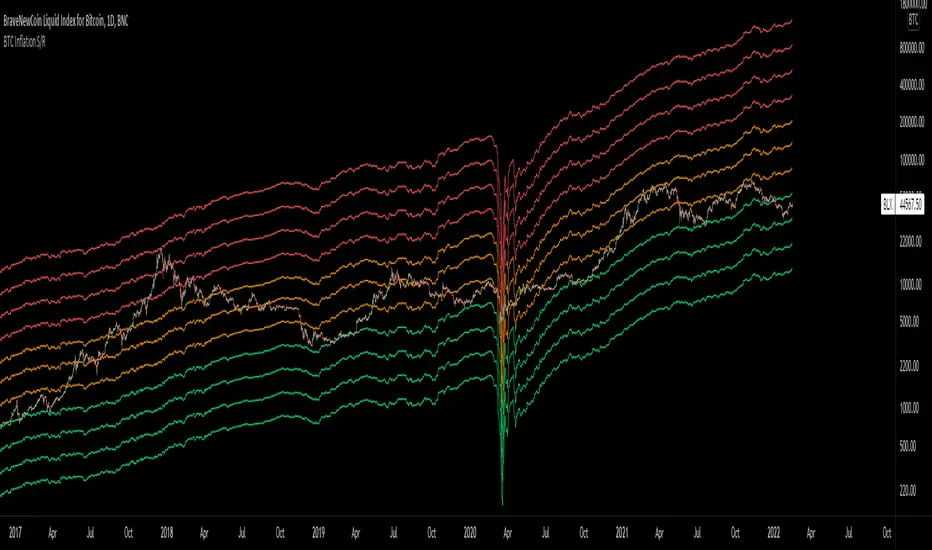 5year breakeven inflation rate fitted for log BTC chart as Support and Resistance