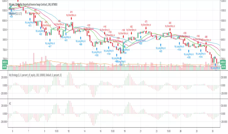 I'm really impressed with this strategy. It is extremely simple, uses only one indicator (accelerator decelerator oscillator) with the standard settings, and works in almost every market I tested it on.