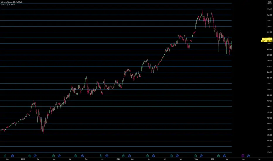 This script automatically plots psychological levels based upon the price and features four settings for adjusting line quantity.