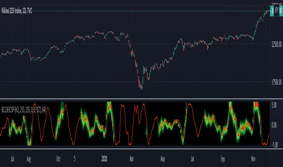 John Ehlers's corona indicators, "Corona Charts," provide a "multidimensional" view of market activity. In the article "Corona Charts" in Nov, 2008, John Ehlers further developed his earlier work on market cycles. A new kind of indicator was presented that uses a glow-like effect to present another dimension of data. Implementation of corona charts in pine v4 helps detect dominant cycles in data. It provides a corona chart for swing positions indicator. He made an enhanced version of corona chart after 4 years, which could be used as a range filter to detect sideways and trends. Dr . Ehlers claims that a corona is displayed when the market is in a trend and there is little cyclic component. The swing position indicator shows the phasing of the data within the dominant cycle. In a pure cycle the Swing Position will trace out the shape of a sine wave.