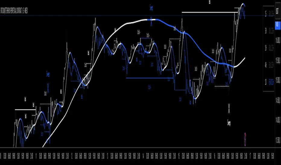 The Emas cryptosmart indicator is a technical analysis tool designed to provide a clear and comprehensive view of the market trend. It combines a long-term Hull Moving Average (HMA) to establish the overall trend with a faster, more responsive Triple Hull Moving Average (THMA) to identify short-term momentum.