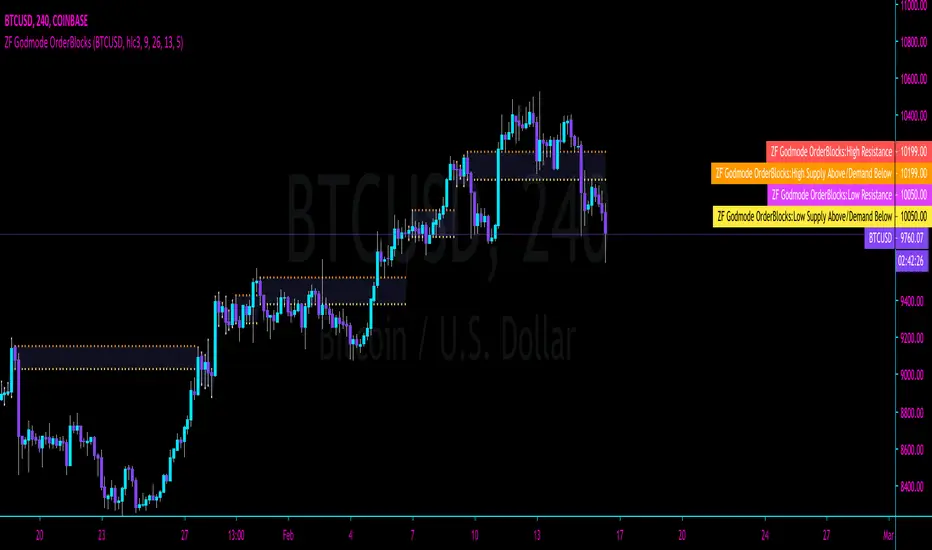 Plots Orderblocks/Orderflow/Supply and Demand Levels based on Volume + EMA + RSI Levels.