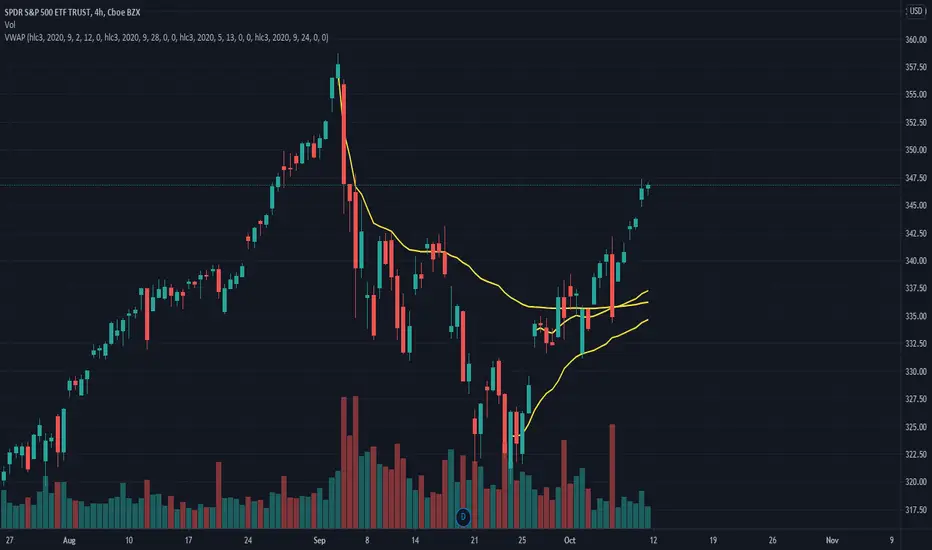 Poor mans anchored vwap. Allows you to identified the volume weighted average price from 4 specific points in time.