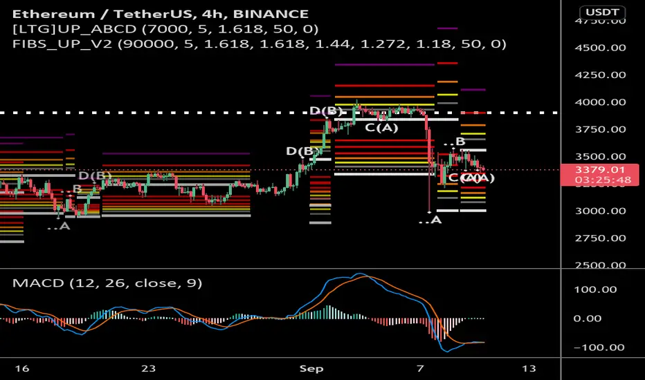 Auto Fibonacci Indicator that selects a starting point on its own , and has a certain set of rules. ABCD is one complete cycle , A being the starting point , B being the High of that move , then C being the bottom of the next leg, D would indicate the Target level based on the Retracement. The target can be customized in the settings of the indicators.發行說明