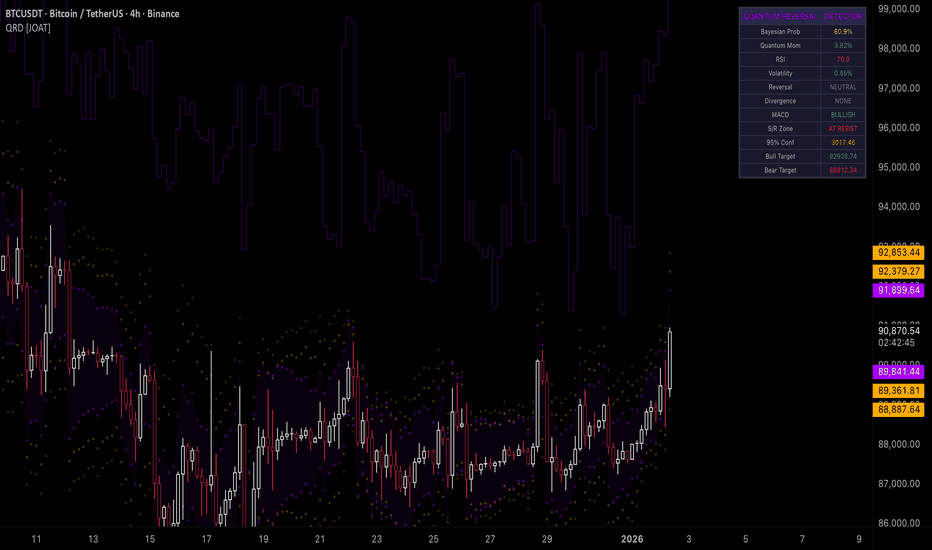 Quantum Reversal Detector is an open-source overlay indicator that combines multiple reversal detection methods into a unified probability-based framework. The core problem this indicator addresses is the unreliability of single-factor reversal signals. A price touching support means nothing without momentum confirmation; an RSI oversold reading means nothing without price structure context.