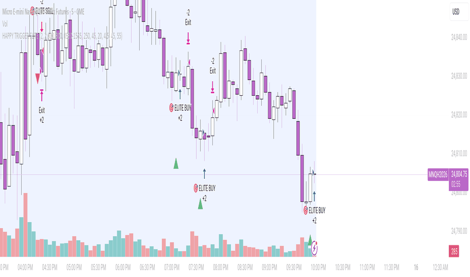 Happy Trigger EliteHAPPY TRIGGER ELITE is a high-performance, structural scalping strategy engineered for precision and explosive growth across high-volatility assets. Developed for the QuantCrawler Discord Community, this strategy bridges the gap between sophisticated pivot analysis and aggressive, high-probability execution. At its core, the strategy utilizes a modified LuxAlgo Ghost Engine to detect "Missed Reversals"—critical zones where the market fails to confirm a new high or low, signaling an imminent structural shift. 🛠️ Key Strategic Pillars Structural Ghost Detection: Identifies high-probability reversal points by tracking structural failures rather than just price wicks. Dynamic Trailing Logic: Employs a precise "Trail Activation" system designed to lock in profits while giving trades the necessary "breathing room" to reach extended targets. Momentum Guard (ATR): Uses an ATR-based volatility filter to ensure the strategy only engages when there is sufficient market participation and "gas in the tank". RSI Exhaustion Filter: Prevents "chasing" moves by requiring price to be in an overextended state before a reversal entry is considered. 🛡️ Institutional-Grade Risk Management Built with funded account safety in mind, the strategy includes hard-coded protection features to safeguard your equity: Daily Circuit Breaker: An automated shutdown occurs if the user-defined Max Daily Loss is reached, preventing significant drawdowns during choppy market conditions. Visual Session Tracking: Automatically identifies peak volume windows, providing a clear visual guide for optimal trading environments. Account Buffer Logic: Calibrated to maintain a stable equity curve by balancing aggressive targets with tight risk-to-reward parameters. Credit: LuxAlgo Optimized by: MeliMillionaire247Pine Script®策略由MeliMillionaire247提供已更新 9