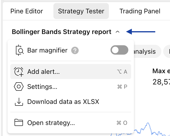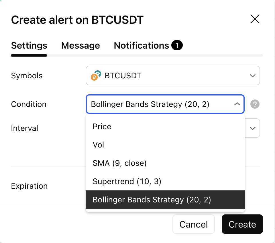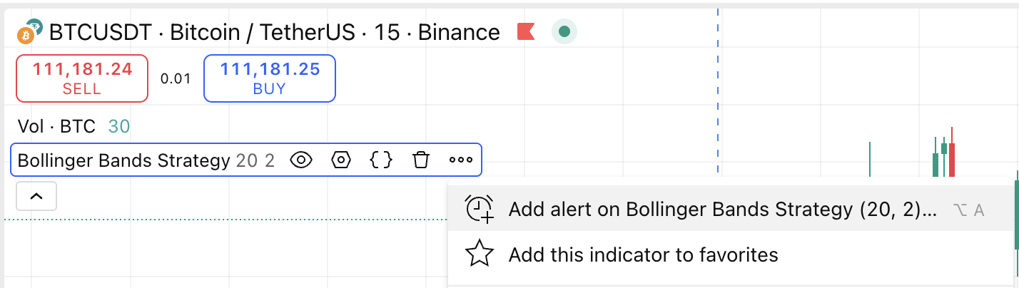 為策略建立快訊時,將在我們的伺服器上建立該策略的副本。然後,此副本將獨立於您的瀏覽器中的圖表策略運行,並且更改圖表策略將不會對其在我們伺服器上運行的副本的操作產生影響。為了使對圖表策略設置的任何更改都反映在快訊的行為中,您將需要刪除前一個快訊並建立一個新快訊。