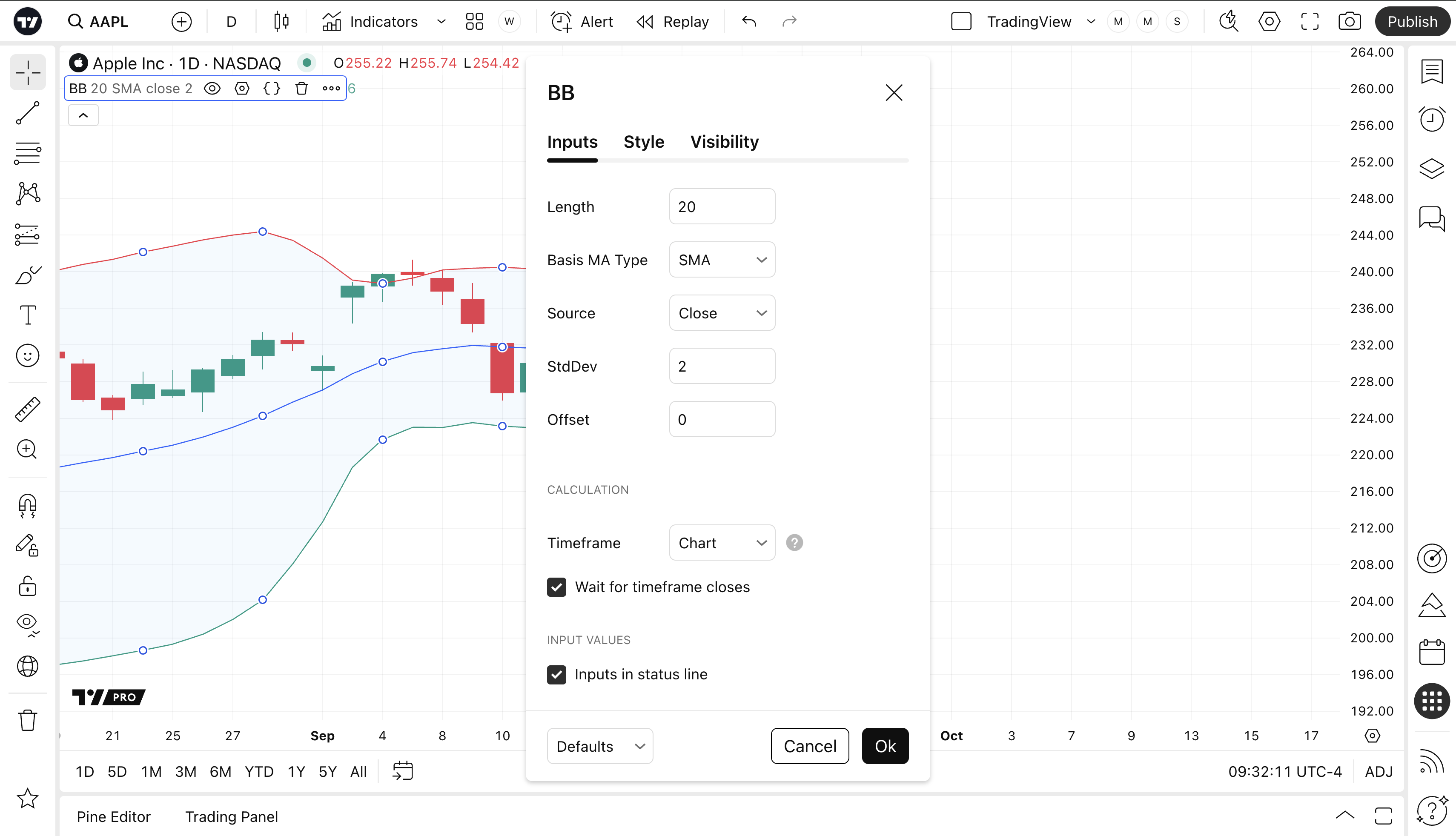 指定計算指標的時間週期。此選項允許根據另一個時間週期的資料計算BB,例如:將1H圖表上計算的BB顯示在5m圖表上。
