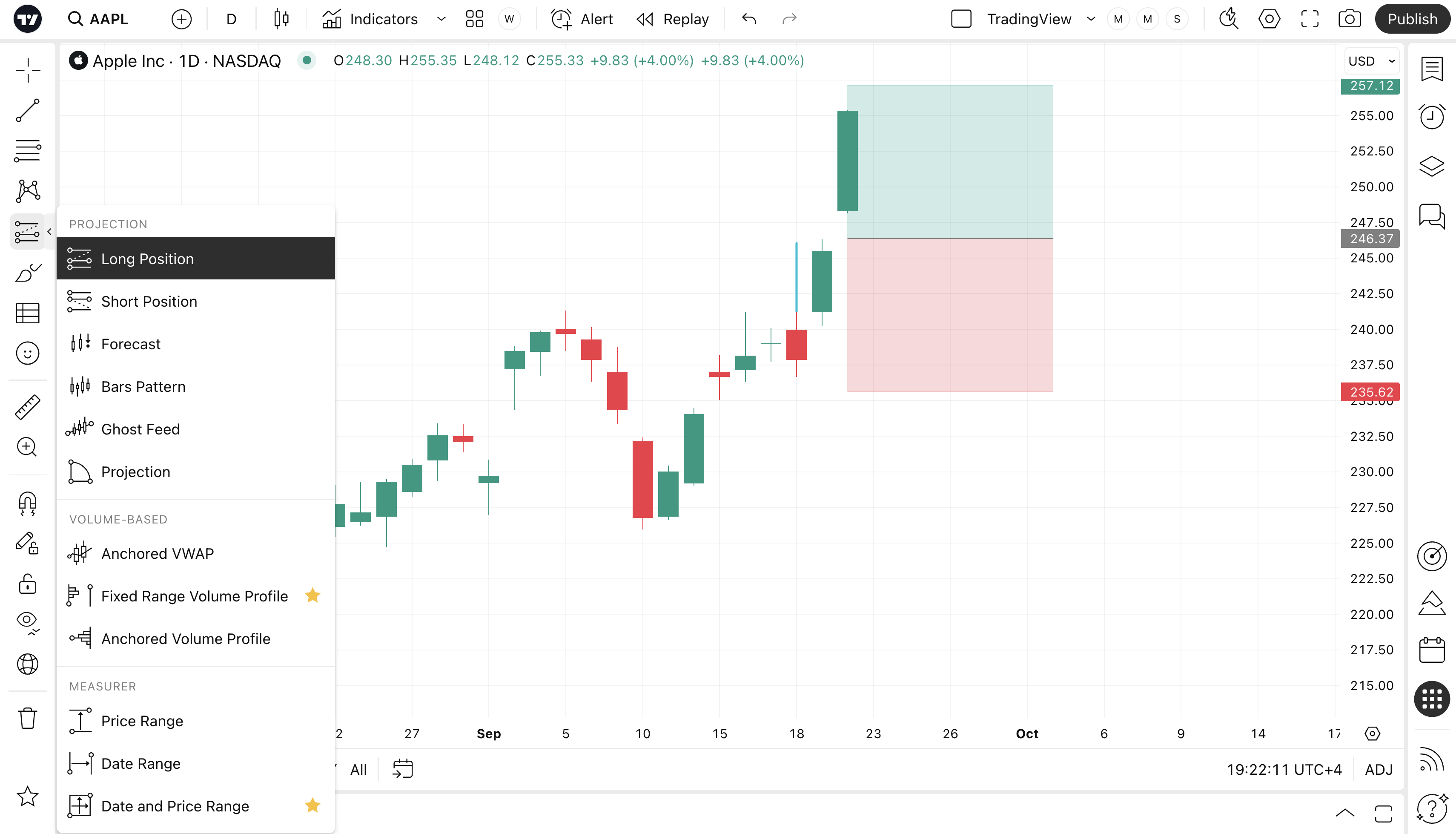 多頭部位可讓使用者設定入場點並從該點開始建立多頭部位。在該價格水平之上和之下延伸將是兩個區域:綠色為獲利區,紅色為虧損區。用戶可以手動調整這兩個區域以改變風險/回報比。